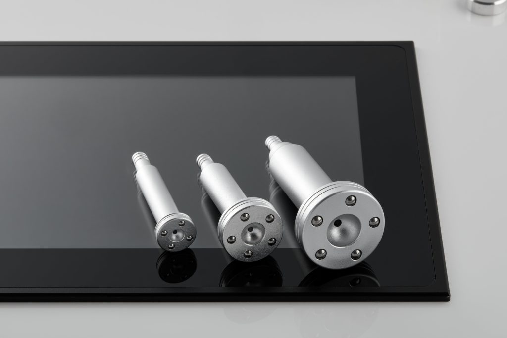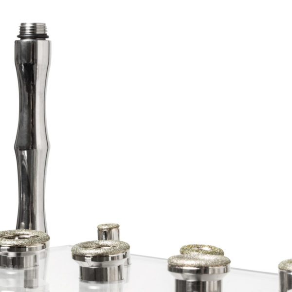 La manipolazione della dermoabrasione è composta da uno speciale sistema di test al diamante, di dimensioni e granulometria variabili, che permettono di trattare in modo preciso ed uniforme lo strato cutaneo attraverso un’esfoliazione meccanica. I manipoli della Vacuum sono stati progettati in lega leggera, permettendo all’operatrice di trattare, con un movimento continuo e multidirezionale, in maniera del tutto sicura e confortevole per tutta la durata del trattamento.
